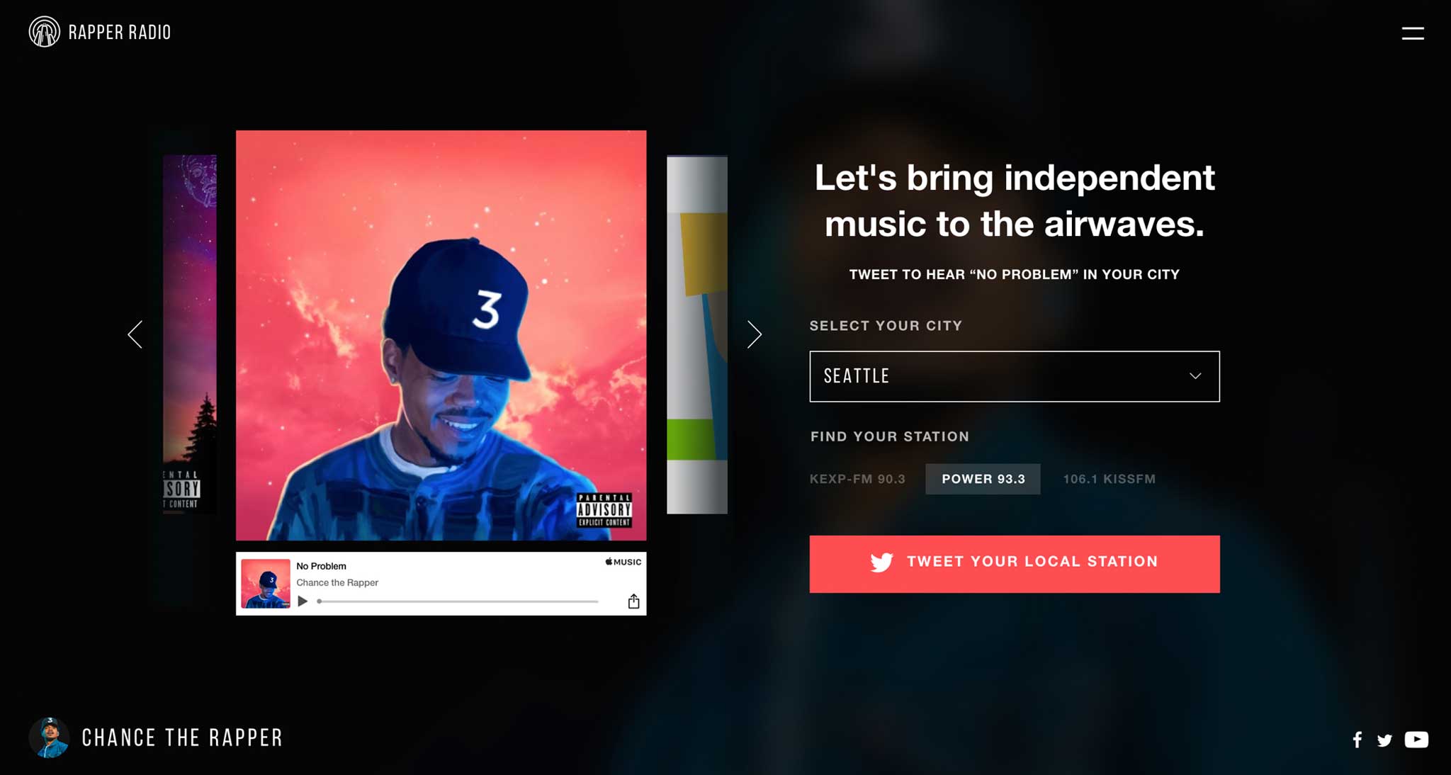 CLIENT: CHANCE THE RAPPER / INDUSTRY: MUSIC + TECHNOLOGY / ROLE: BRANDING + DESIGN + PRODUCT